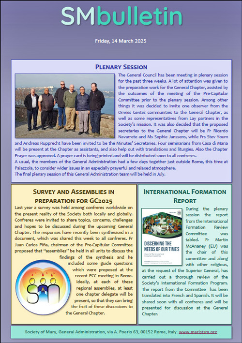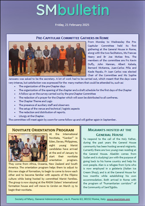 SM BulletinGeneral Chapter preparations, novitiate orientation and refugees at General House |