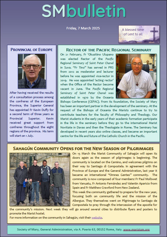 SM BulletinEuropean provincial's reappointment, new rector at Pacific Regional Seminary, pilgrim season at Sahagun |