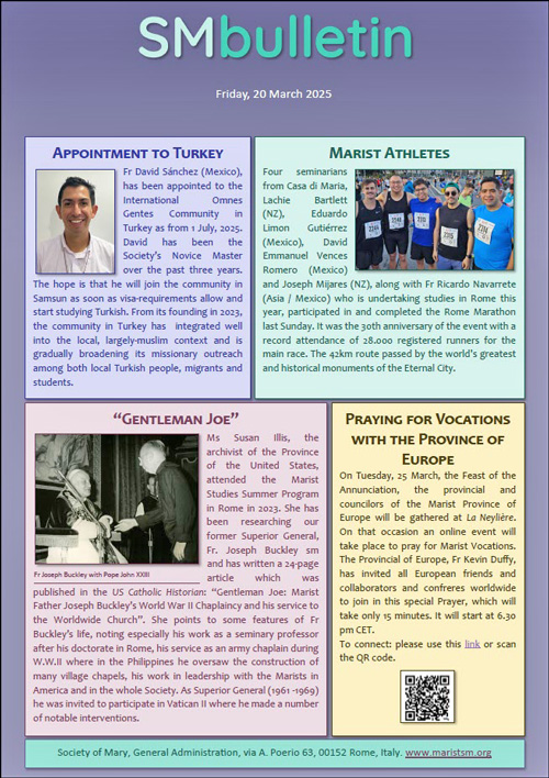 SM BulletinFr David Sanchez' Turkey appointment, seminarians in Rome marathon, 'Gentleman Joe Buckley' and vocations prayer in Europe |