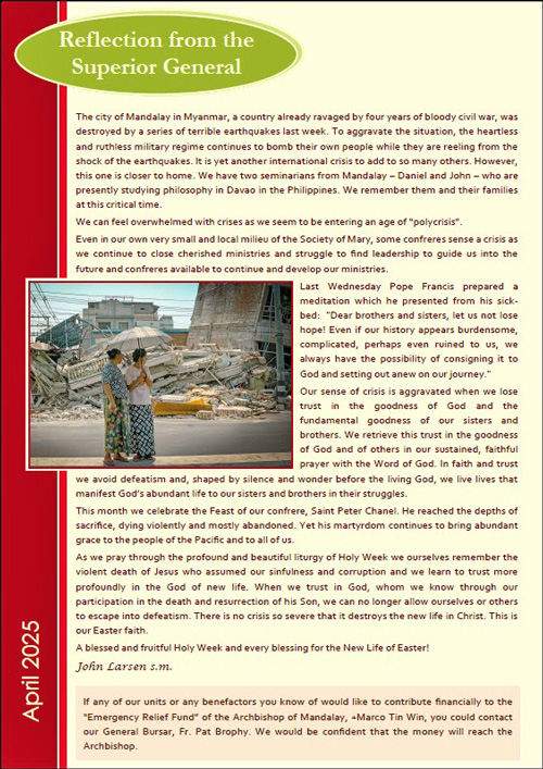 Superior-General's ReflectionMyanmar's earthquake and the call to trust |