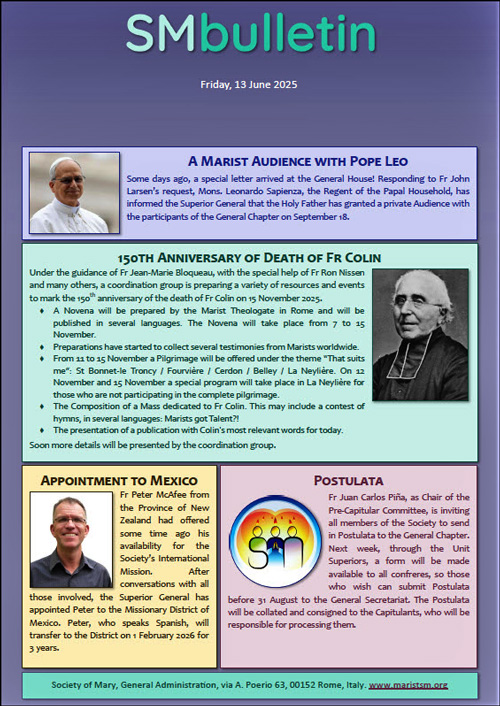 SM BulletinGeneral Chapter, Colin pilgrimage, new Marist website |