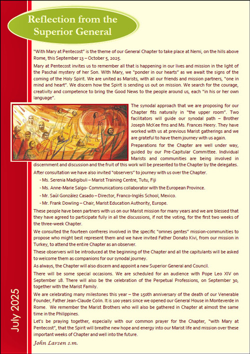 Superior-General's Reflection and Chapter ReportFr John Larsen |