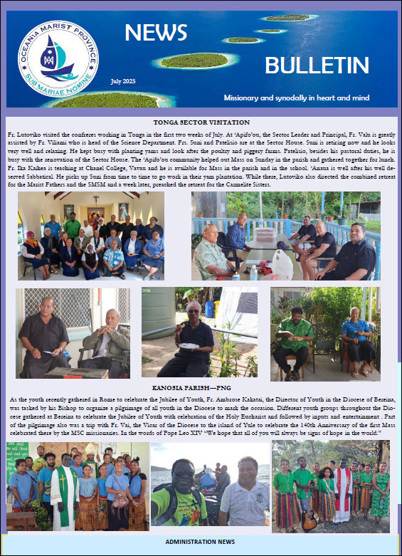 SM BulletinBishop Susitino Sionepoe SM appointed Archbishop of Nouméa, New Caledonia, ongoing formation programs for 2025 and Marist Holy Year pilgrims in Rome |
