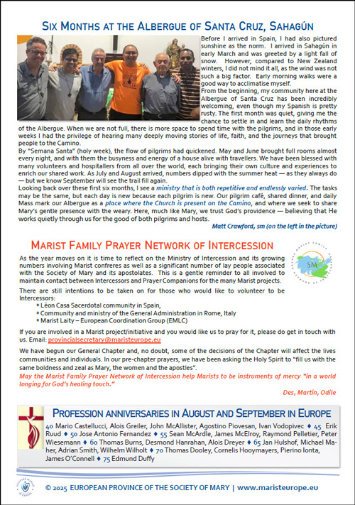 EuroinfoMarist summer studies, Sahagun experience, prayer network. |